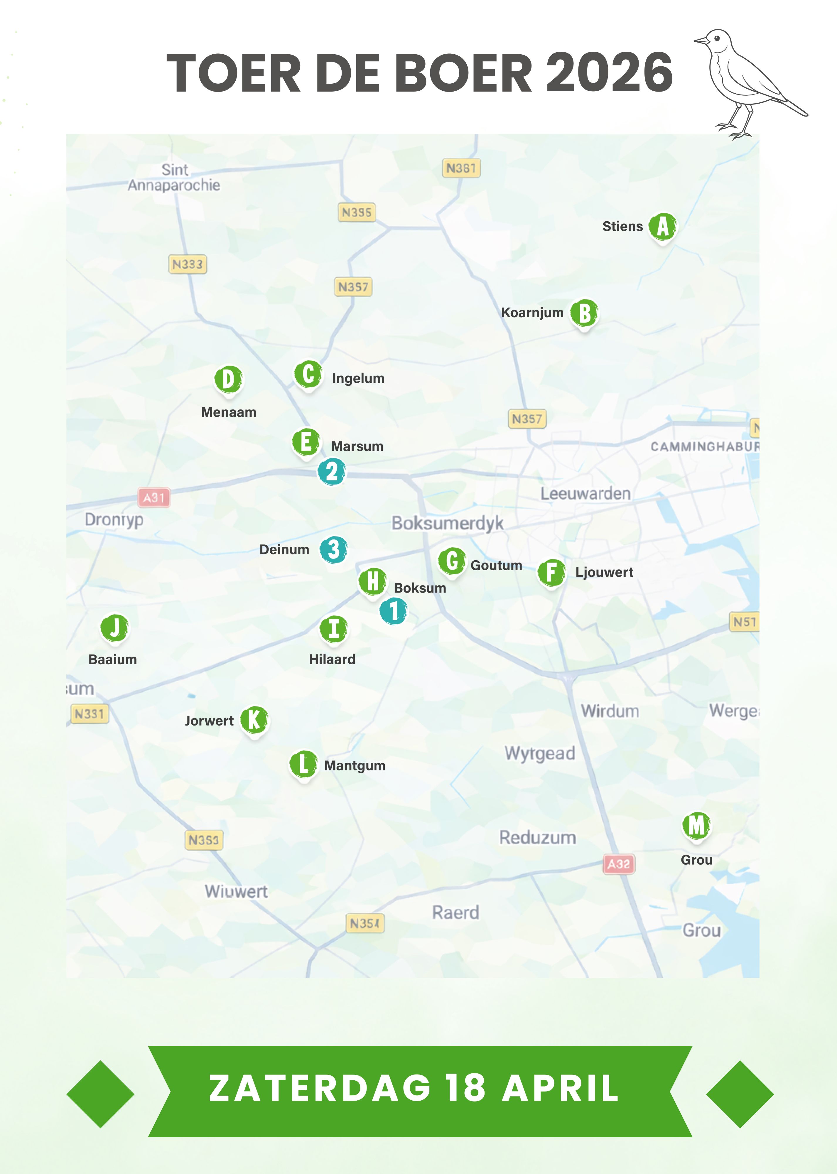 Deze Toer de Boer is een initiatief van boeren rond Leeuwarden, met ondersteuning van de o.a. Gemeente Leeuwarden, Gemeente Waadhoeke en LTO Noord.
