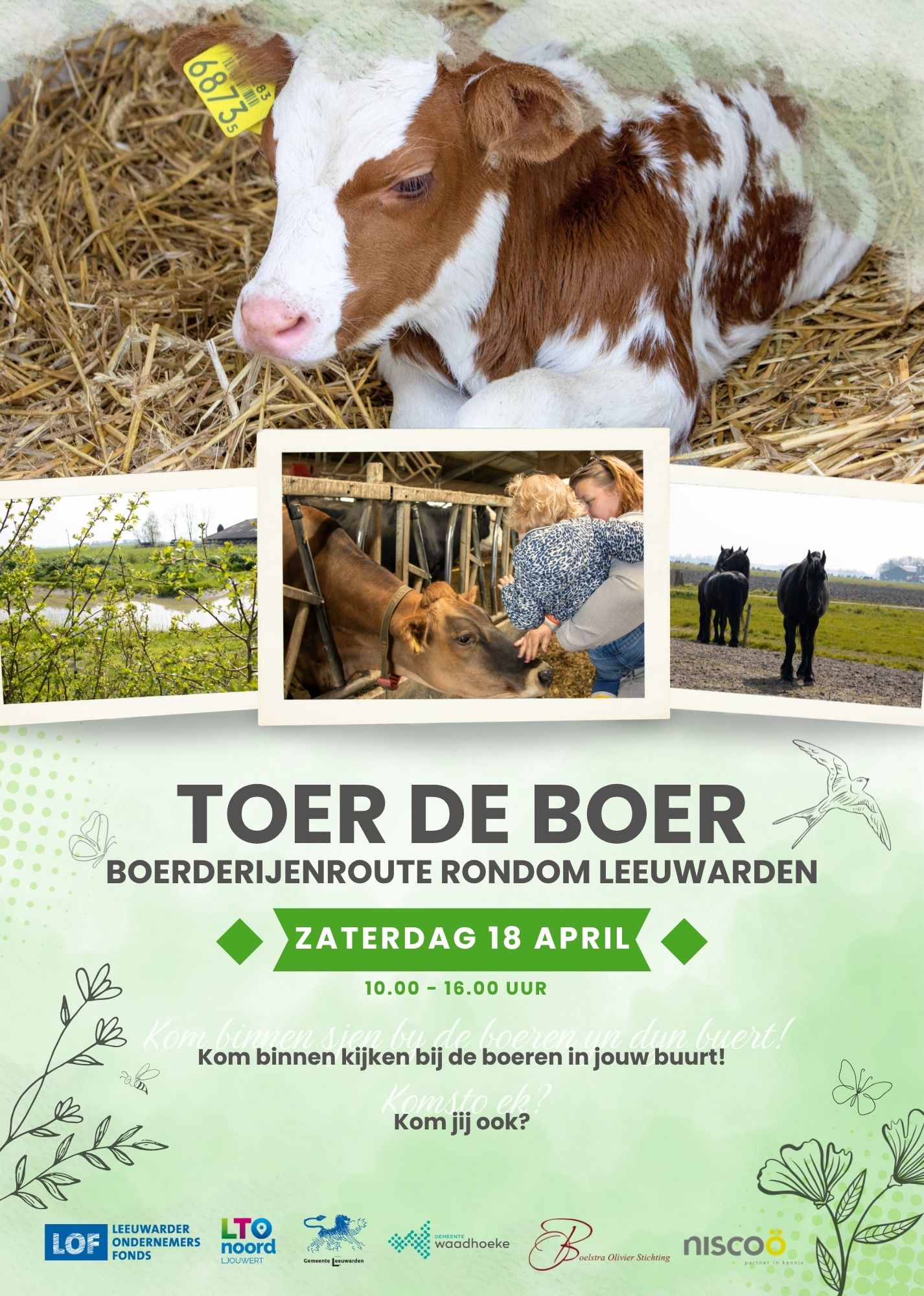 Boeren rond Leeuwarden openen op zaterdag 18 april hun deuren tijdens ‘Toer de Boer’.
