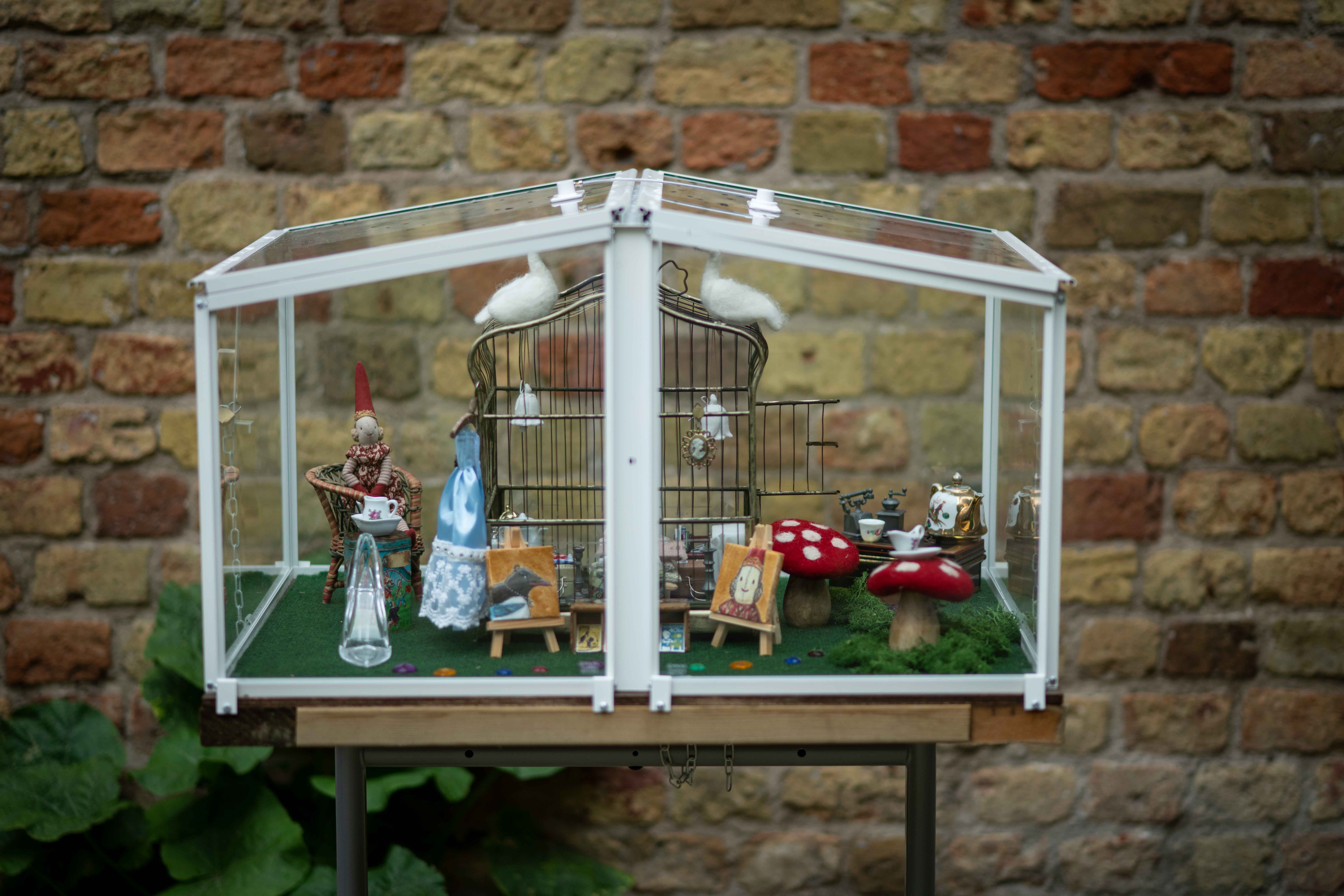 Pompelien wil porselein. Dit etalagekastje laat het verhaal zien van Pompelien. Pompelien is een kaboutermeisje dat is opgegroeid op het kabouterpad maar er van droomt om prinses te worden. Haar beste vriendin Eef de ekster neemt haar mee naar een prachtige tuin…en daar leeft ze nu als sprookjesprinses. Kun jij nog meer sprookjeselementen in het kastje ontdekken?